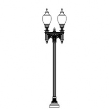 The most popular of all our numerous combinations of historic light poles are featured here. These standard packages are more affordable because we stock many of these items. Quick ship poles are all featured within this section. Our cast aluminum stock Antique Streetlamps matched with decorative arm brackets are available within 2-3 weeks of order. Light pole options include banner arms, receptacles, irrigated basket hangers, and photo electric control. If you don't see a light pole you like here, please visit our other sections of integrated light pole products to create your own unique antique street lamp design.